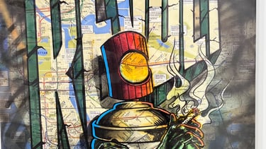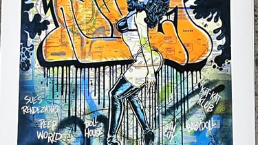 Dr. Revolt's "Downtown Local" Augmented One of a Kind. Framed and Signed Artist Proof 18 x 24"
