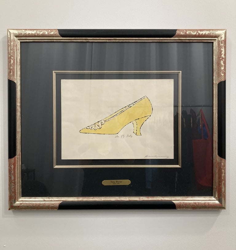 Andy Warhol's "Shoe Fly Baby" Hand Signed Print with Hand done Watercolor by Warhol Approx. 8 x 10"; Framed 12 x 18"