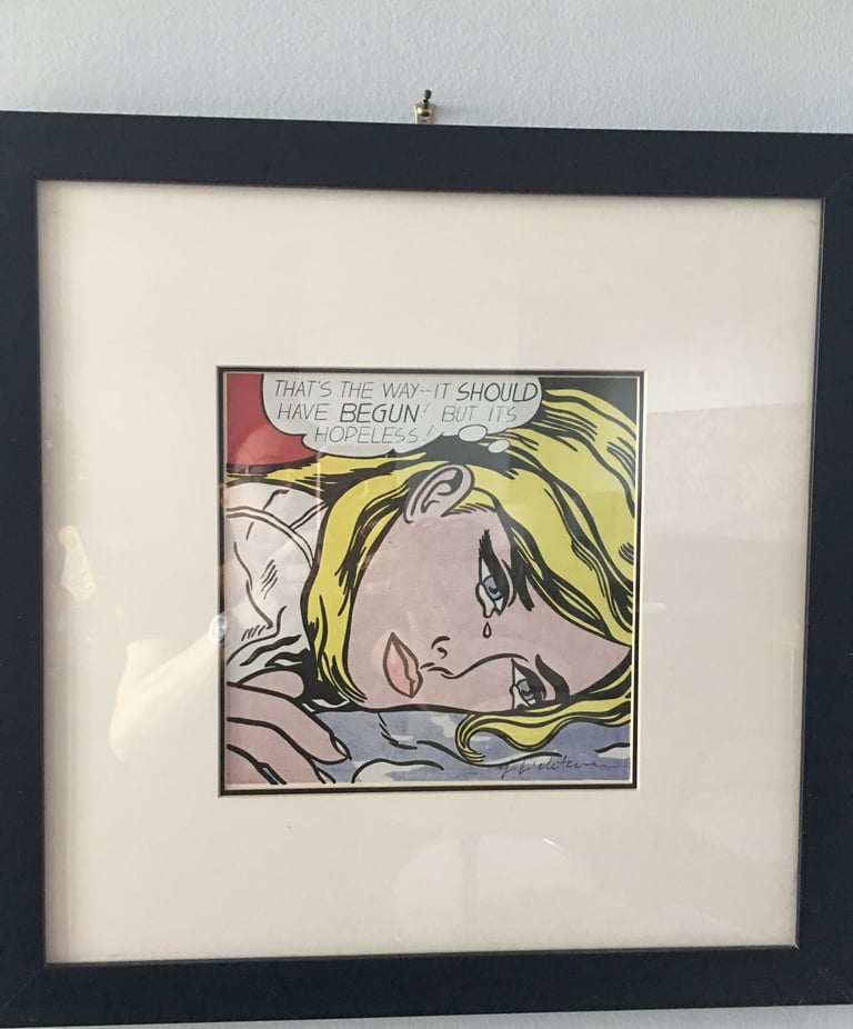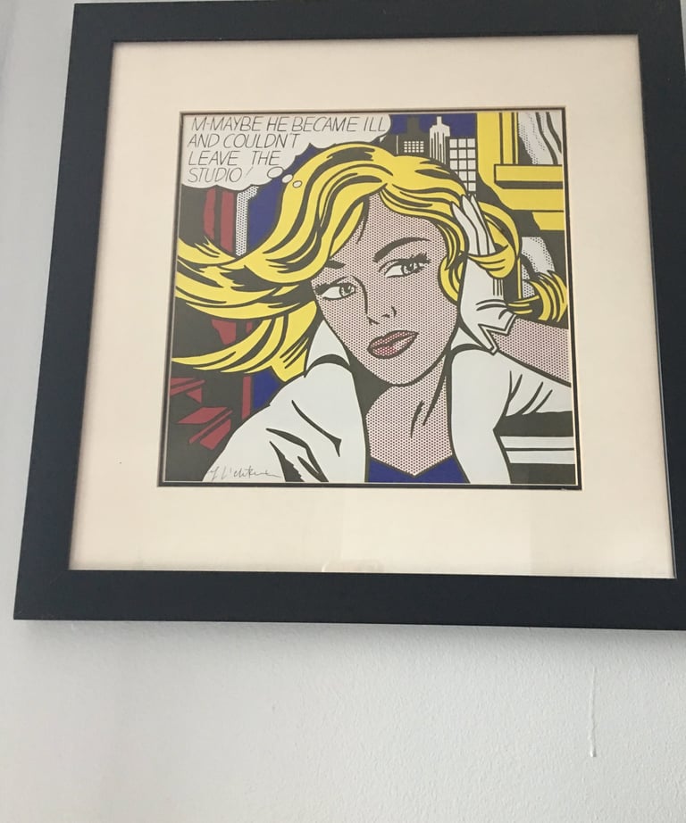 Roy Lichtenstein "Maybe" Hand-Signed Print in Black Gallery Frame Approx. 12 x 12"
