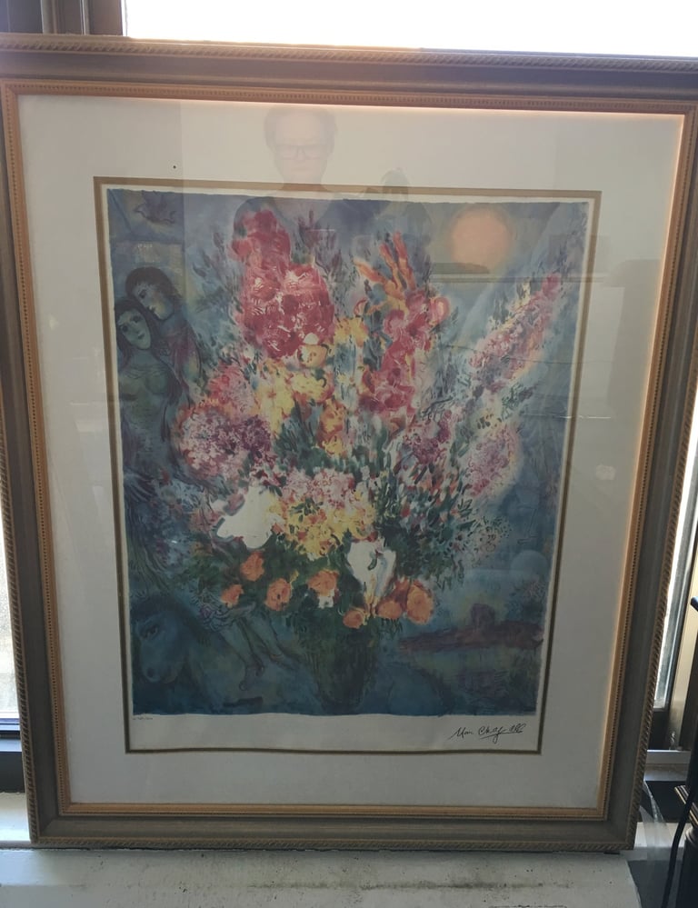 Mark Chagall's "Flowers" Signed in Stone Framed Approx. 24 x 36"